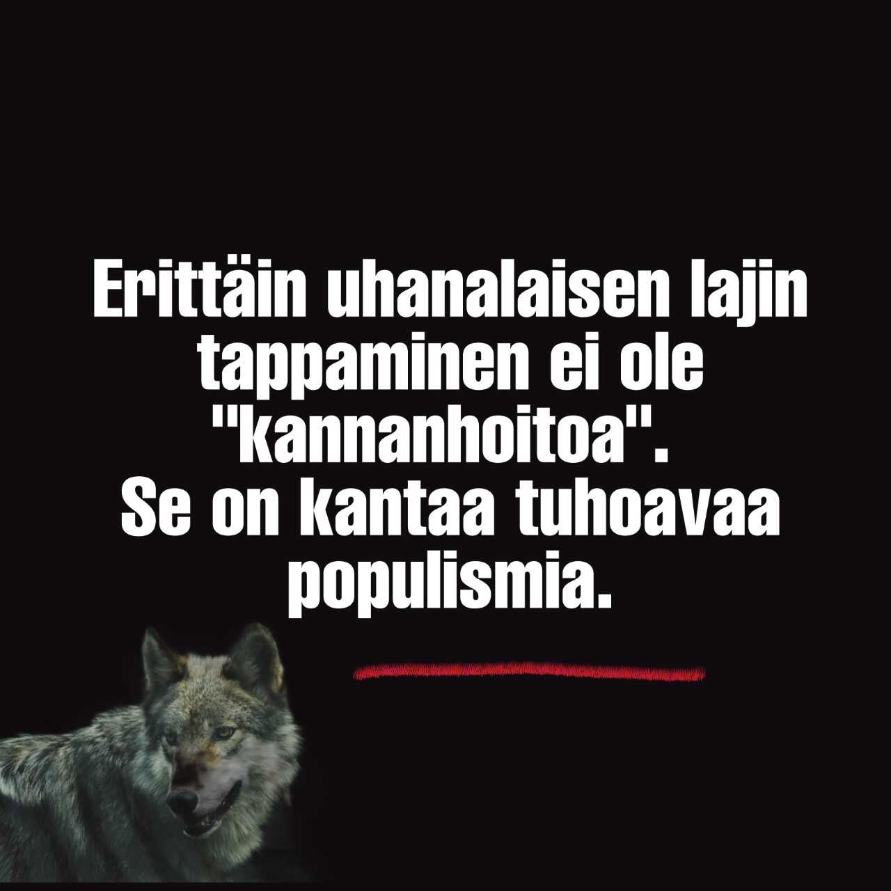 Miksi Maa- ja metsätalousministeriö tekisi jotain näin hätiköityä ja järjenvastaista? Selitys löytyy populismista. Erityisesti maa- ja metsätalousministeri Jari Leppä on nähdäkseni jo pitkään harjoittanut eläin- ja luontovastaista populismia. Susien tappamisen salliminen on yksi keino kalastella ääniä heidän keskuudestaan, jotka tahtovat päästä susijahtiin. Tällaisella populismilla on synkkiä seurauksia. Ennenaikainen metsästyksen salliminen on omiaan ylläpitämään näihin arkoihin eläimiin kohdistuvaa perusteetonta pelkoa, vihaa ja vainoa.